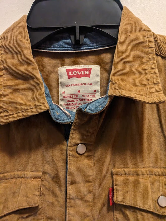 Levis Boys Medium (10-12) tan corduroy long sleeved snap front shirt