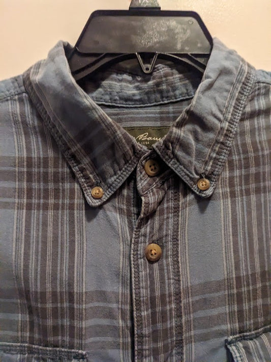 Eddie Bauer Men's XL blue plaid long sleeved button down shirt with front pockets