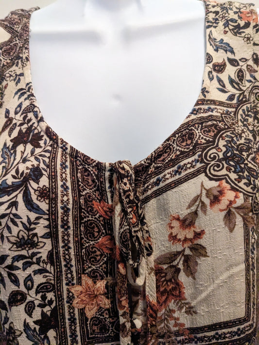 American Eagle Women's XS brown floral sleeveless blouse w/flared hem NWT